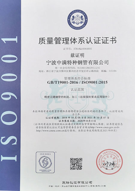 寧波中滿特種鋼管有限公司是一家專業生產精密光亮無縫鋼管、碳結鋼無縫鋼管、合金鋼管、異型鋼管、方管、六角鋼管、無氧光亮退火精密鋼管、汽車零部件用精密無縫鋼管、高壓膠管管芯用精密管。